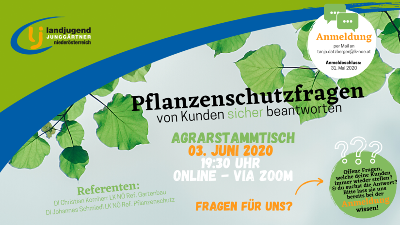 Anmelden unter tanja.datzberger(at)lk-noe.at und deine persönlichen Fragen gleich direkt bei der Anmeldung bekannt geben.
